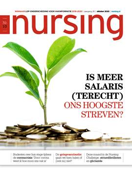 Vandaag verschijnt het Nursing-magazine van oktober 2020. Met daarin onder meer de discussie over wat verpleegkundigen het hardst nodig hebben: meer salaris of minder werkdruk? De toetsartikelen gaan over atriumfibrilleren en gliclazide.